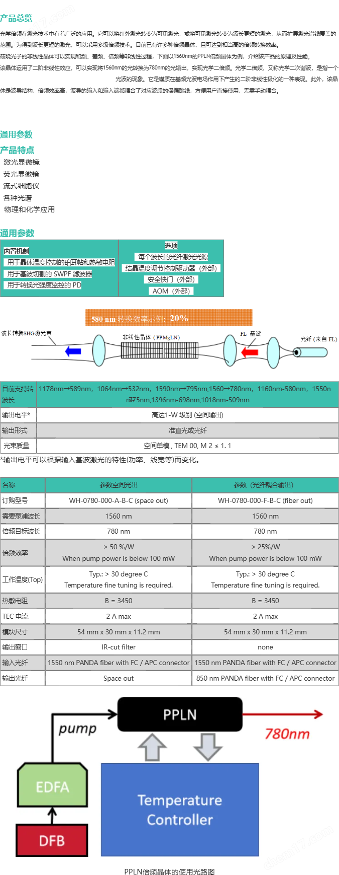 WH-0780-000-F-B-C-1560nmPPLN波導(dǎo)倍頻模塊(非線性模塊)